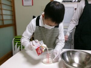 生クリームを泡立てます。