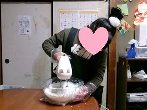 まずは、ボウルに砂糖と生クリームを入れたらハンドミキサーで泡立てます✋