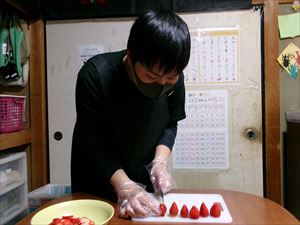 切ったいちごを乗せてまたスポンジでサンドします♪