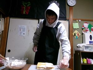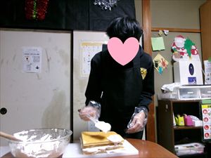 次に、スポンジにクリームを塗って間にいちご🍓を挟み、