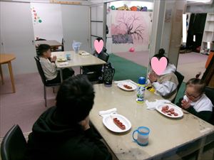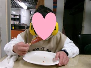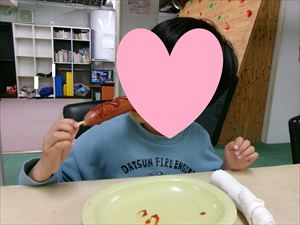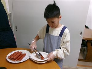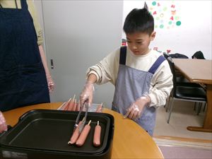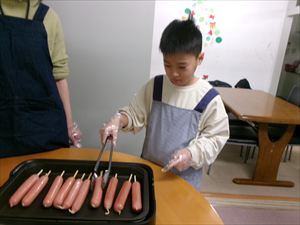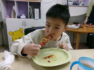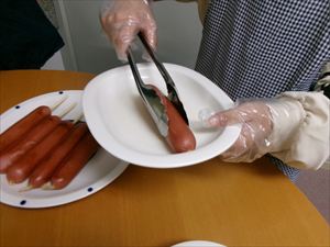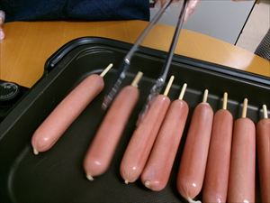 Sくんがホットプレートでフランクフルトを焼いてくれました!