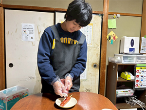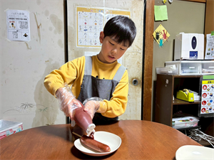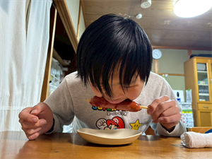 つぼみに戻ったら今日のおやつのフランクフルトを準備して・・・