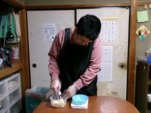 生地が出来たら手のひらで生地を転がして丸めていきます✋