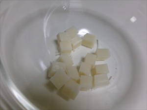 まずはお餅を切ってレンジで溶かして・・計量して温めた牛乳を入れて混ぜますよ~