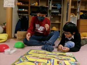 お正月遊びは、すごろく・福笑いで盛り上がっていました!!