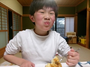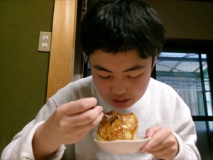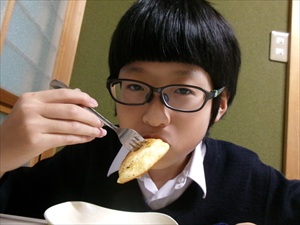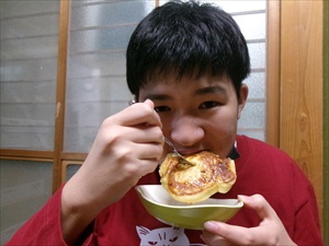 お餅をパンケーキの中に入れると、フワフワに膨らんでいます!!