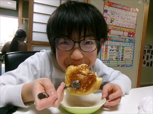 今週のおやつは「お餅でパンケーキ」🍯