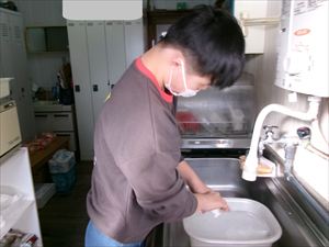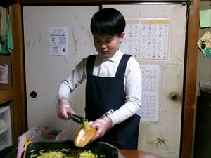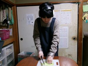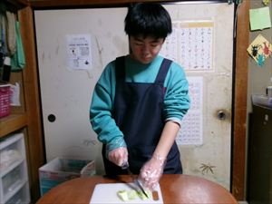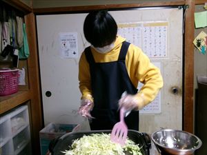 次に、キャベツを切って、お水とカレーパウダーの計量をします!