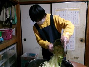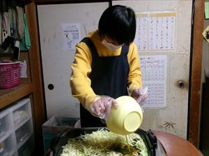 続いてキャベツを炒めます!