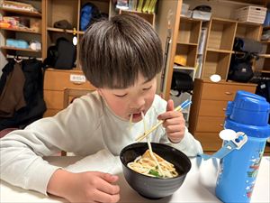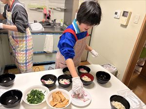次はおやつ作りです!今週のおやつは「きつねうどん」です🦊