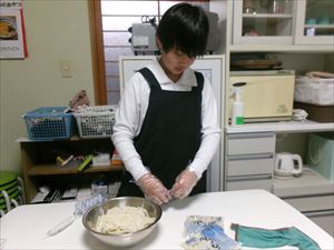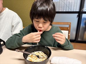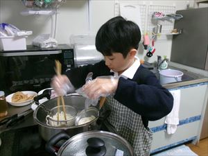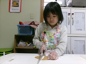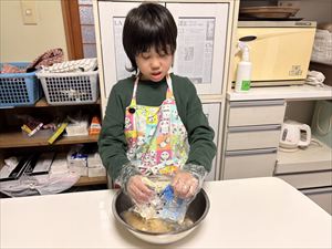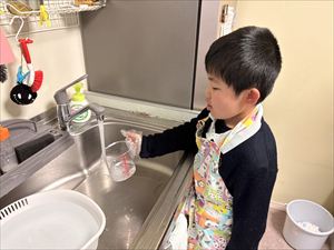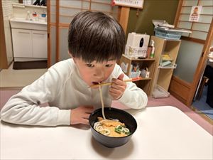 次はおやつ作りです!今日のおやつは「きつねうどん」です🦊