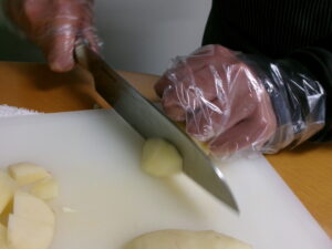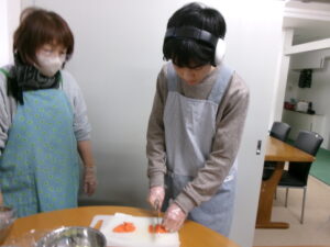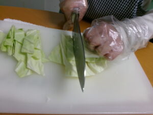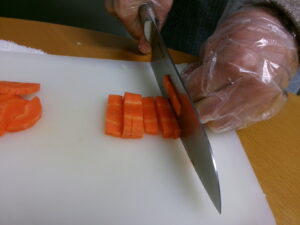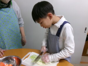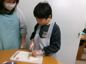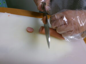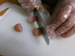 野菜とウインナーを切っていきます!