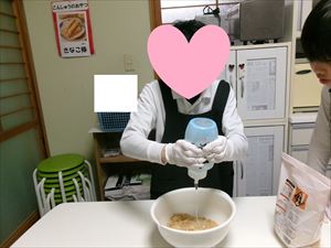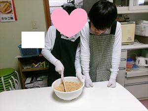 水あめもきなこと同じ分量で計量し、混ぜ合わせていきます。