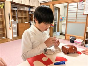 これをちぎって、きれいに形を整えていきます。