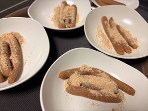 次はおやつ作りです!今週のおやつは「きなこ棒」です!