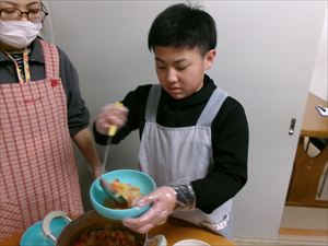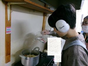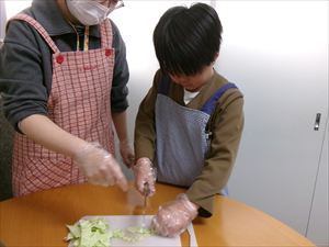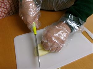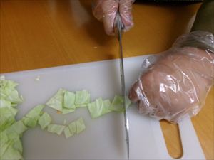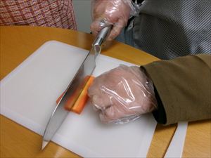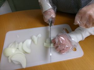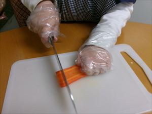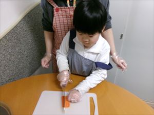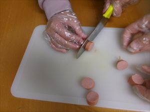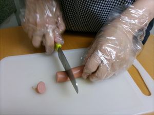 ウインナーや玉ねぎ、にんじんなどの具材を切ります。