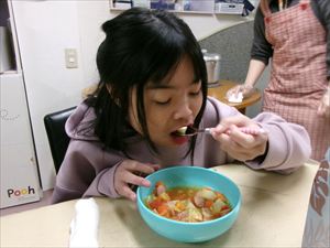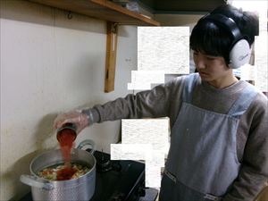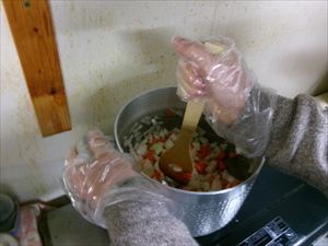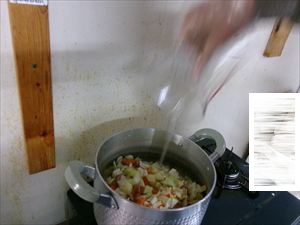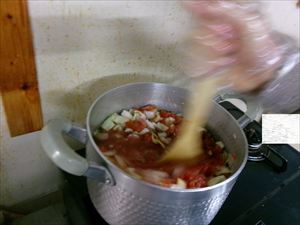 具材を炒めて、水やトマト缶、コンソメなどを入れ煮込んだら完成です!