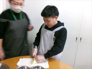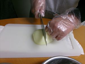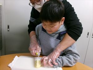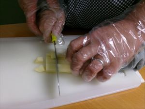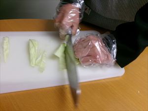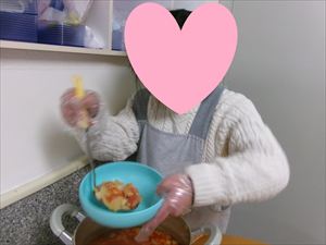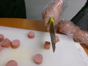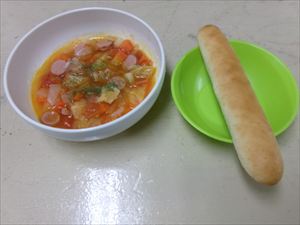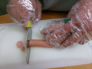 次はおやつを作ります。ミネストローネ🍅です🎵野菜とウインナーを切ります。