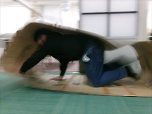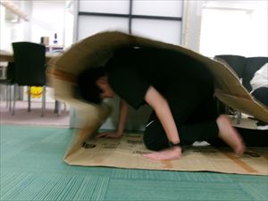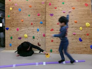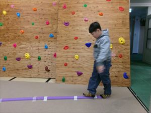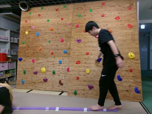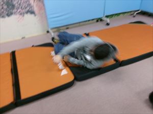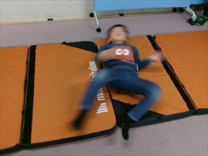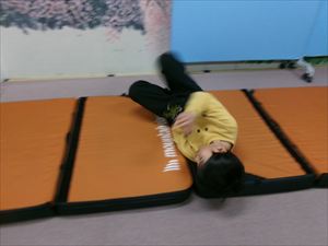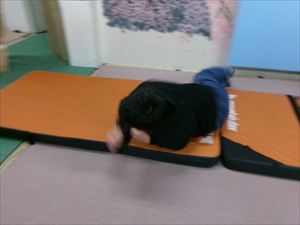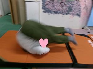 マット転がり~キャタピラー~棒の上を落ちないように歩きます!