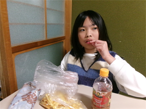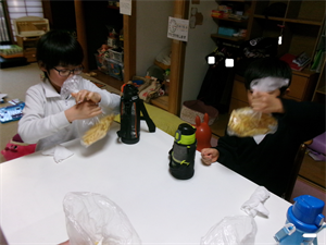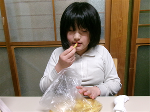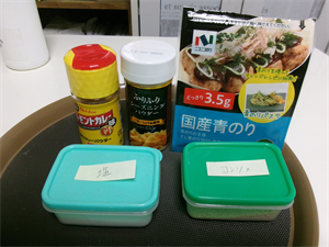 袋に入っているポテトに、好きな味の粉を振りかけて