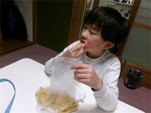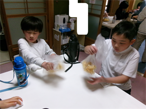 子ども達に「土曜日の朝、少し雪⛄積もったけど遊んだ?」と聞いてみると
