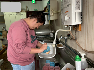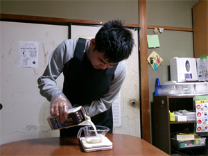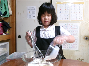 はじめに、ホットケーキミックスと牛乳の計量をします!