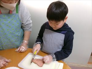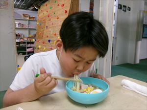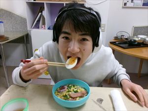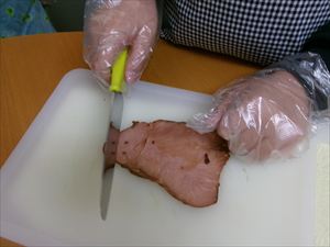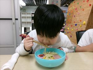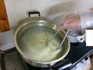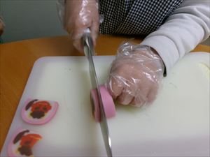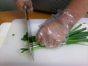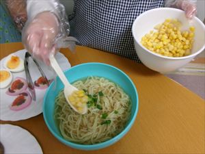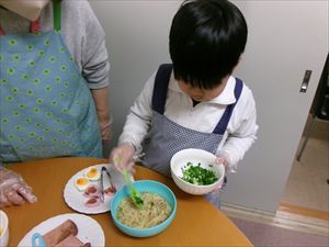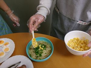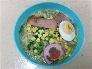 具材のネギやかまぼこ、チャーシューなどを切って、