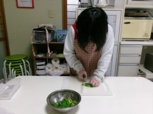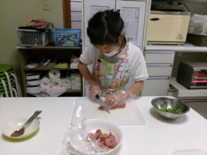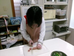 ウインナーを切ります。