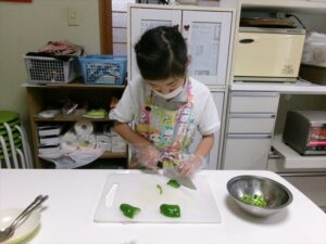 ピーマンを切ります。