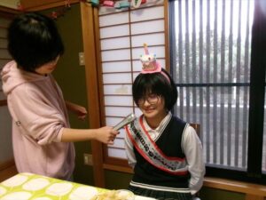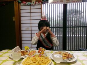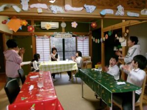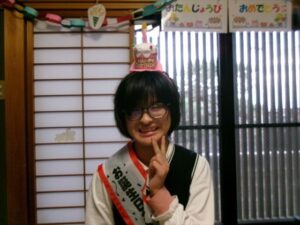 ハッピーバースデーを歌い、みんなから「おめでとう」のメッセージです🎤
