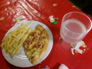 リクエストメニューは【ピザ・ポテト・りんごジュース】です!
