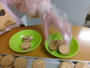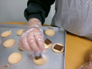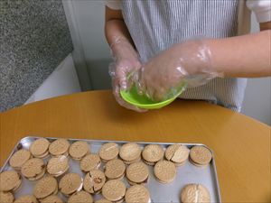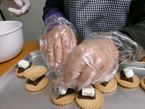 今週のおやつは【マシュマロチョコサンドクッキー】です。