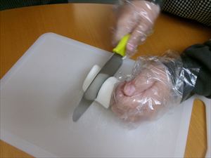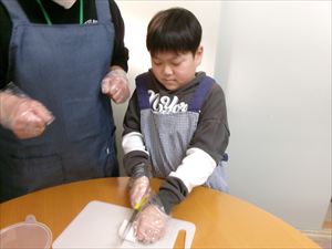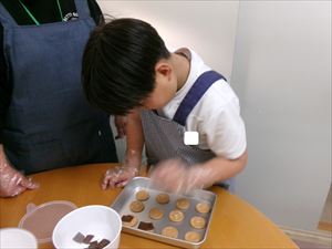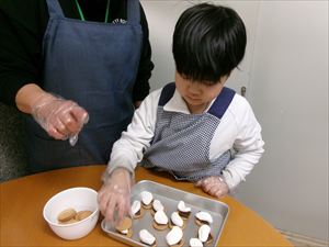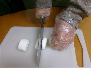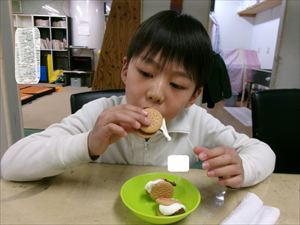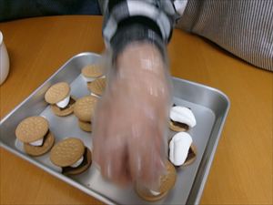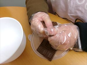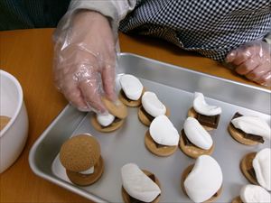 マシュマロを切りチョコをパキパキっと割っていきます。