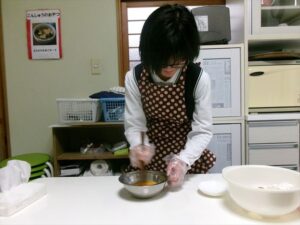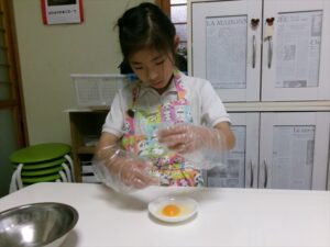まずは、卵🥚を割って、混ぜていきます!