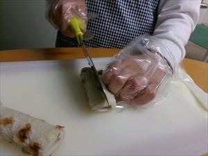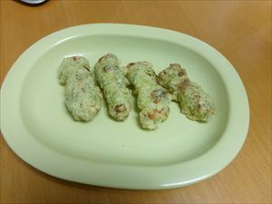 今週のおやつは【ちくわの磯辺揚げ】です。