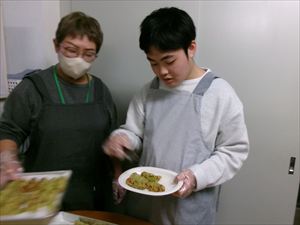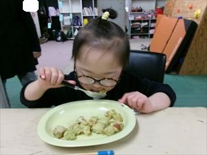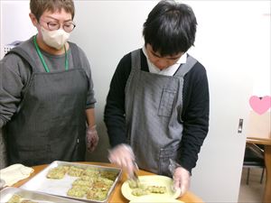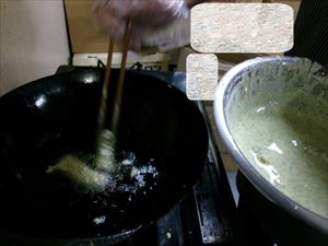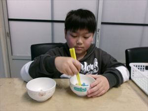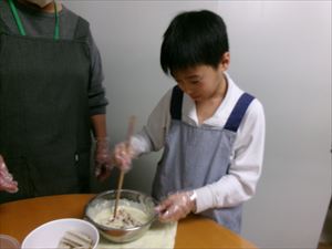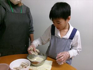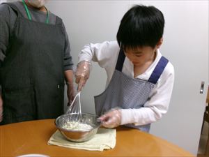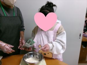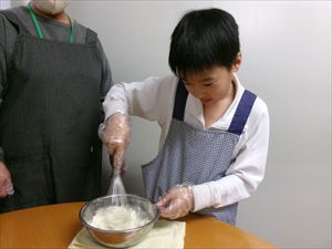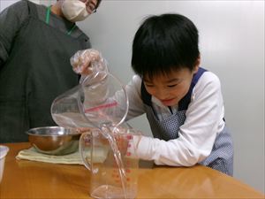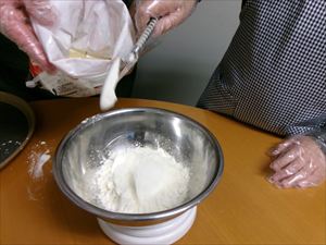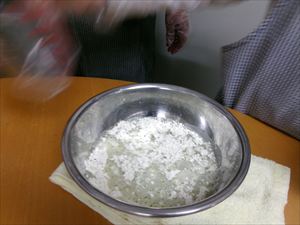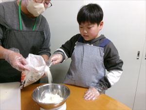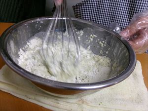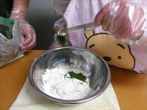 衣を作ります。小麦粉と水を計量して混ぜます!青のりも入れましょう(‘ω’)ノ