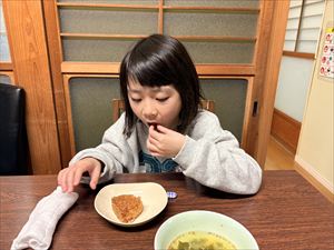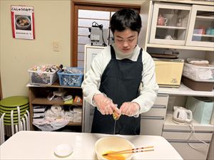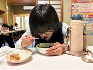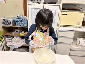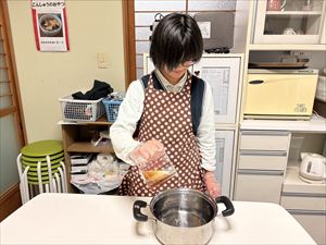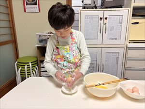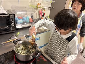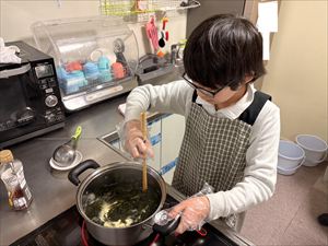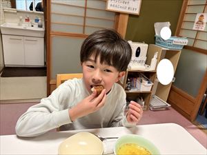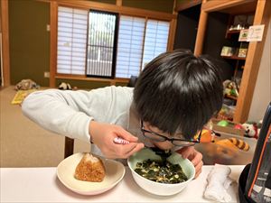 次はおやつ作りです!今週のおやつは「ふわふわ卵スープと焼きおにぎり」です🥚🍙