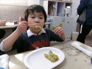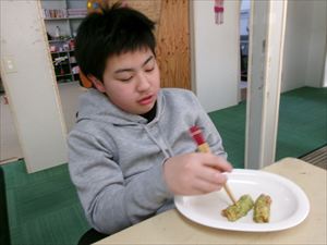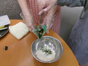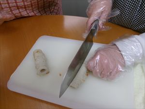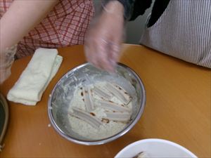 おやつの【ちくわの磯辺揚げ】を作ります。
