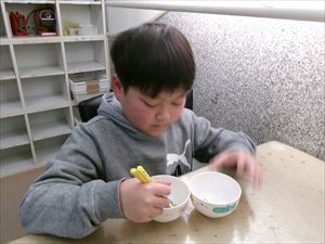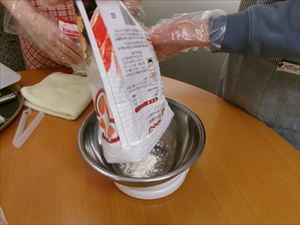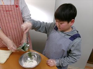 小麦粉と水を計量してあおさと一緒に混ぜます!