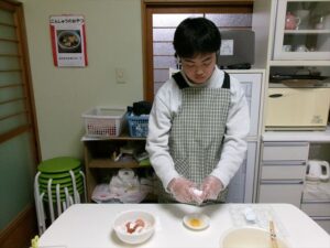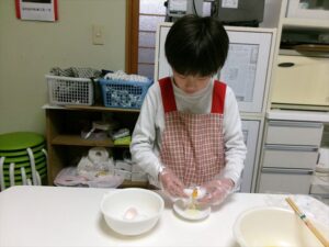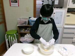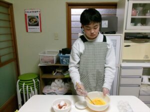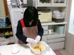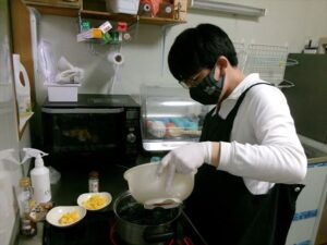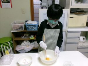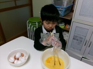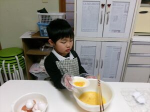 卵を割り、混ぜます🥚