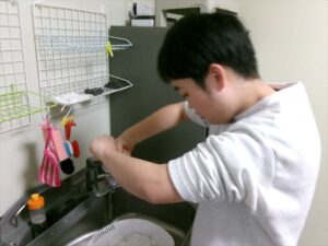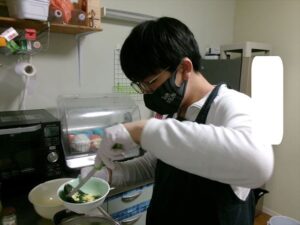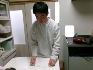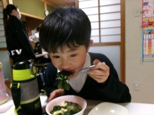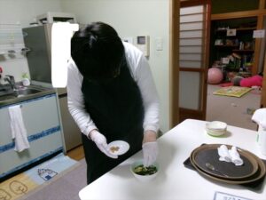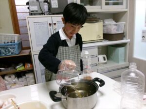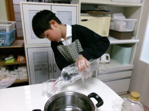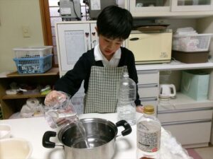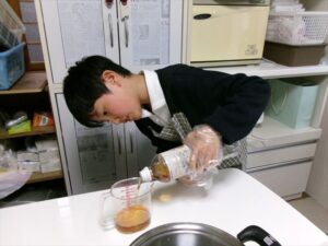 だし・水・わかめを計量します。