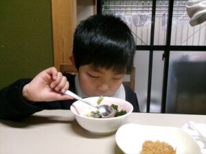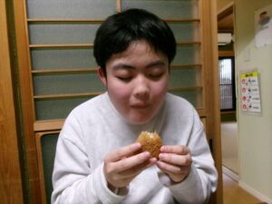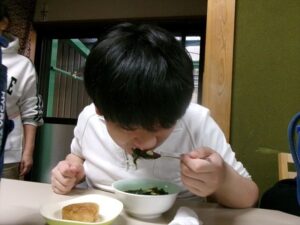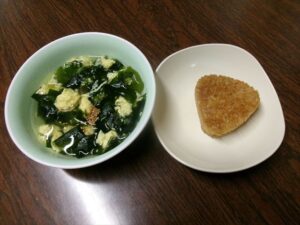 おやつは【ふわふわ卵スープと焼きおにぎり】です(^^)