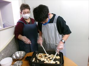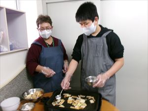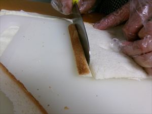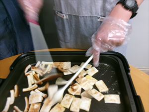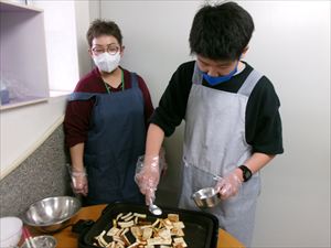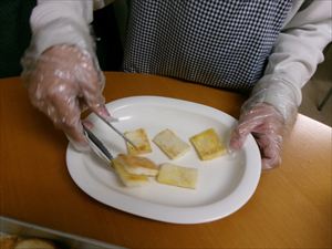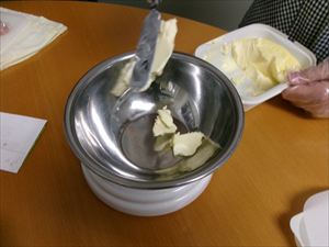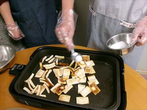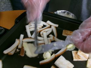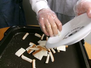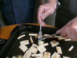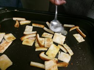 バターを溶かしながらパンと絡めグラニュー糖を振ります。