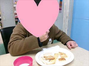 今日のおやつは(カリカリ食パンラスク)です♬