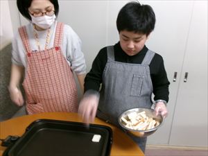バターと砂糖を計量します。