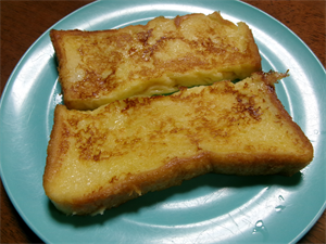 液が完成したら食パンを半分に切っていきましょう🍞