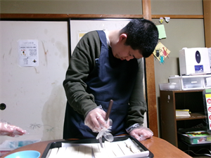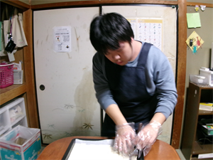 仕上げに器にシチューを入れてくれています!