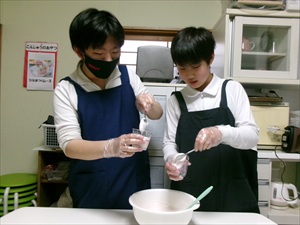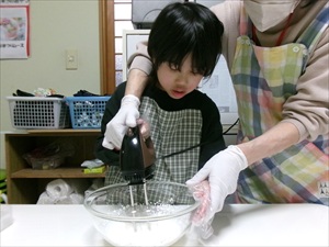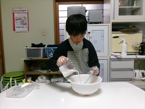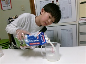 牛乳を計量したり、生クリームを泡立てて、フルーチェに混ぜていきます!