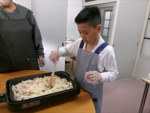 ホットプレートで炒め、味付けをしたら完成です。