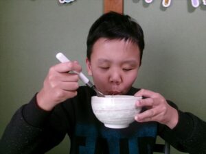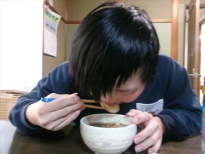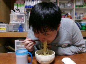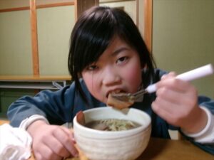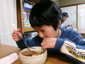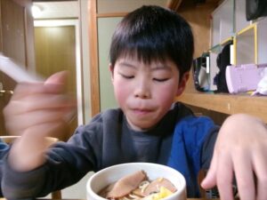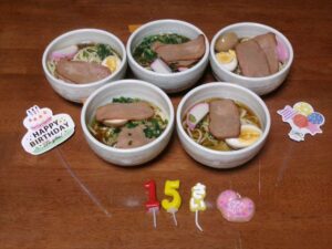 最後に温かいスープを注いだら,リクエストメニューの【ラーメン】の完成です💕